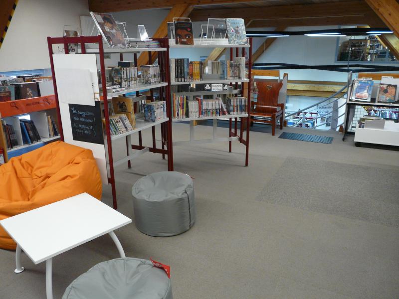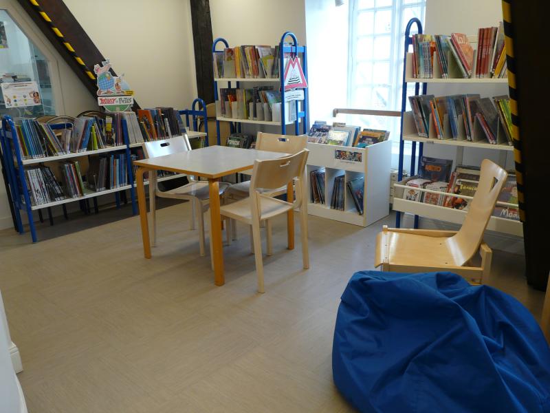 Bienvenue dans la section jeunesse, située au dernier étage de la bibliothèque !
