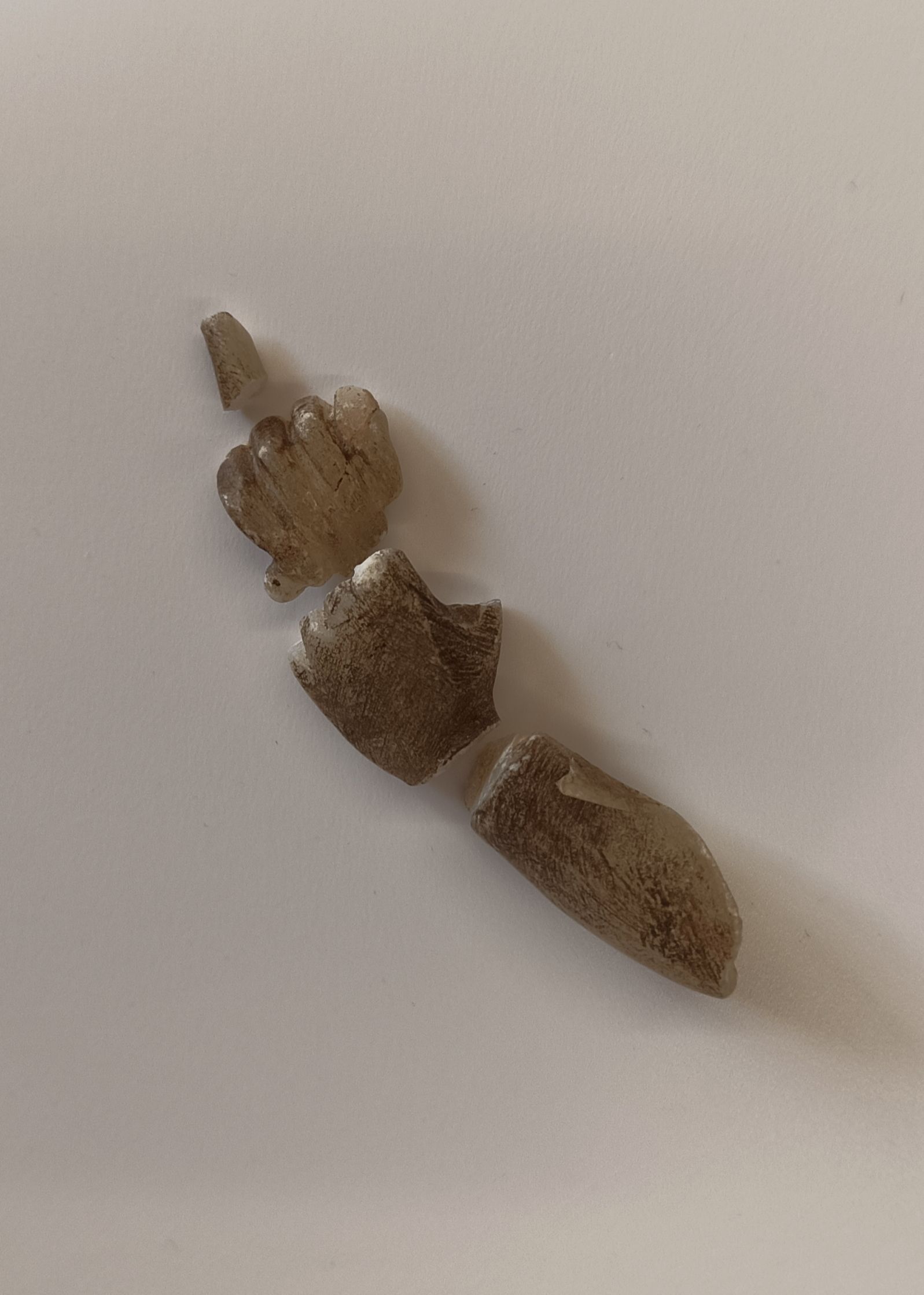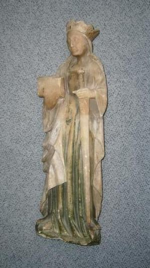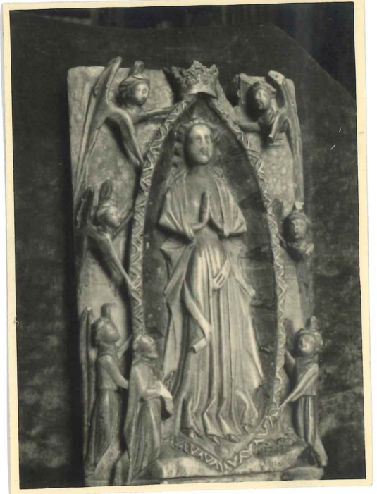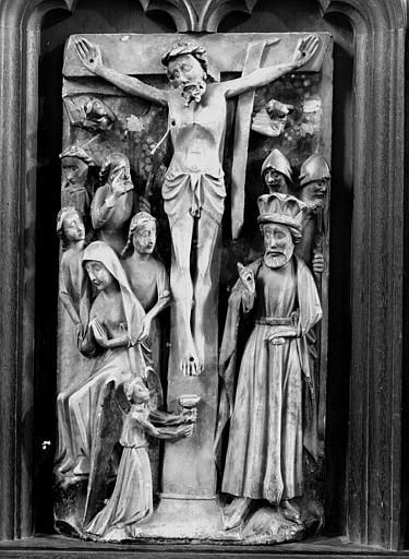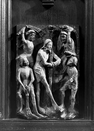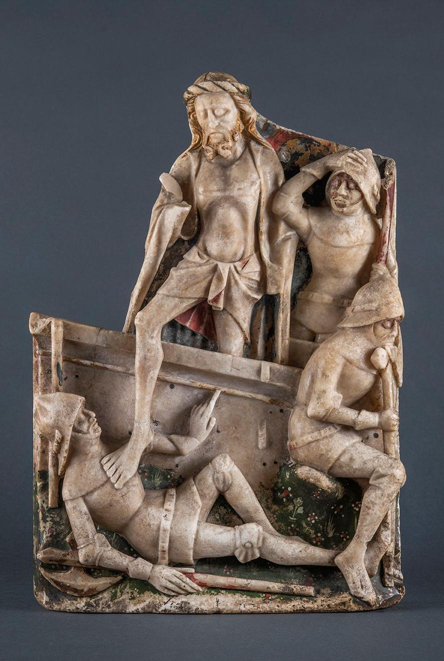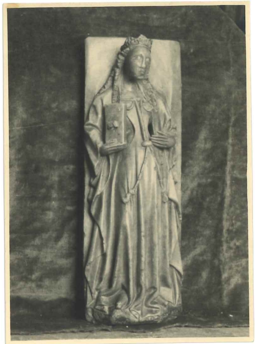 Sur la série des onze bas-reliefs en albâtre datant du XVe siècle, une seule est conservée : sainte Catherine, brisée, dont les morceaux jonchent le sol. Le fragment de main issu du bas-relief représentant la Flagellation était déjà conservé à part, résultat d’une précédente manipulation malencontreuse.
