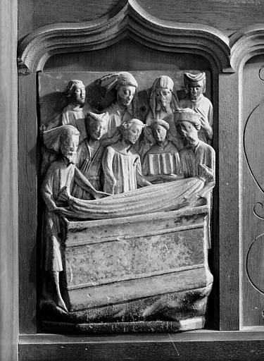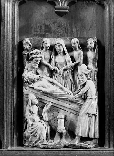 Datés du XV e siècle, les bas-reliefs s’inscrivent dans la production de ce qu’on nomme couramment les « albâtres de Nottingham ». Cette production, qui s’étale du XIVe au XVIe siècle, est spécialisée dans la fabrication de petites scènes religieuses, souvent peintes, destinées à orner retables et tombeaux.