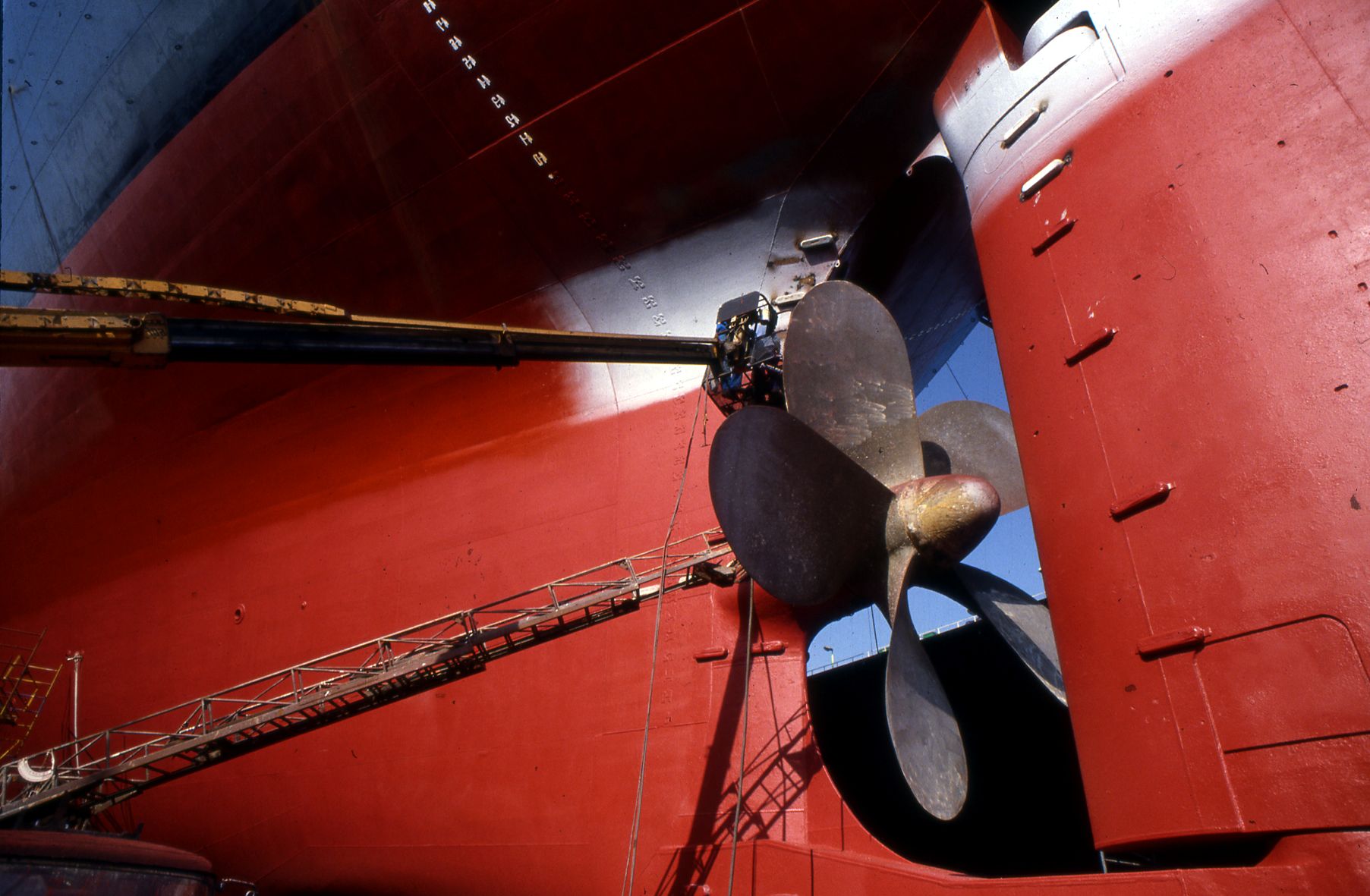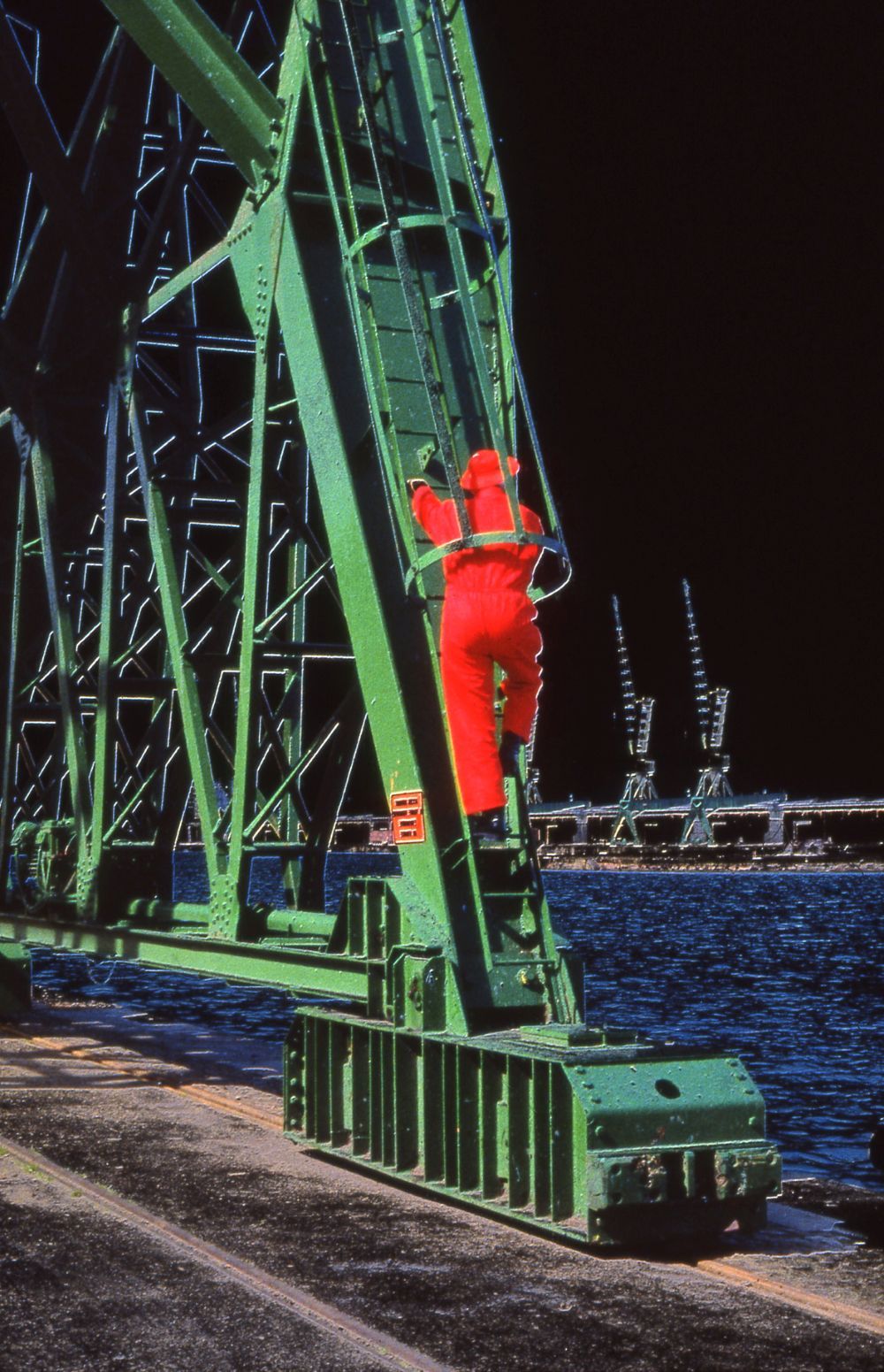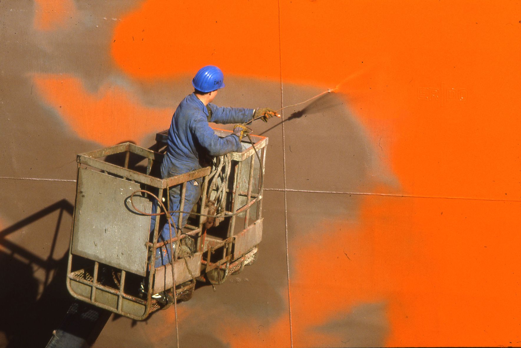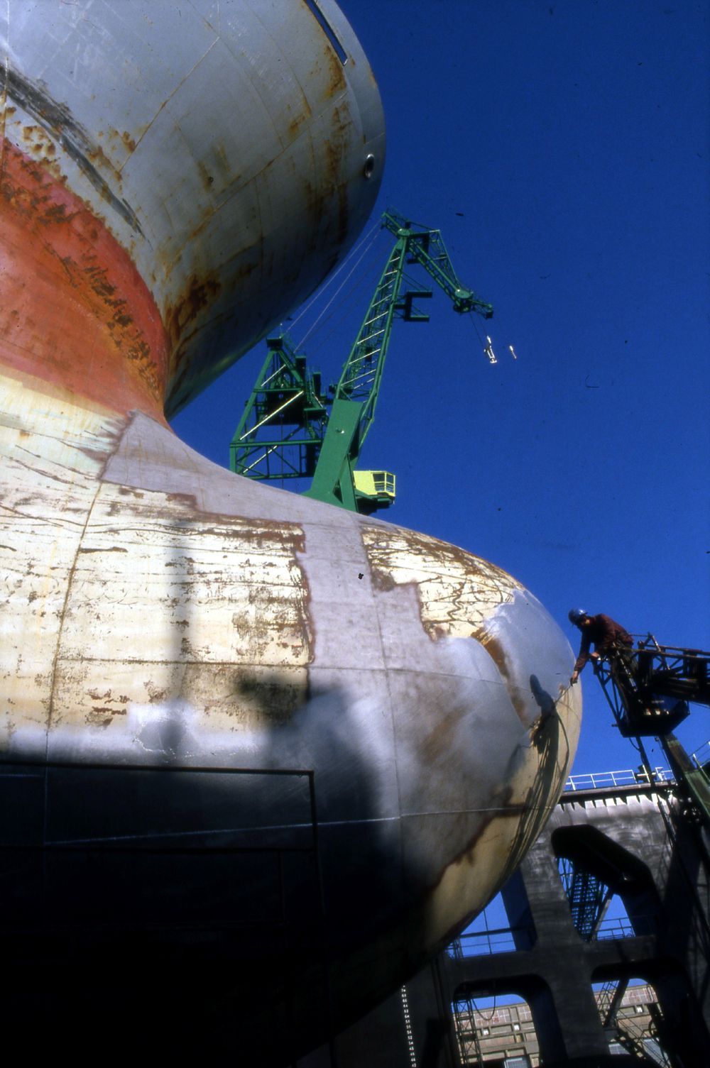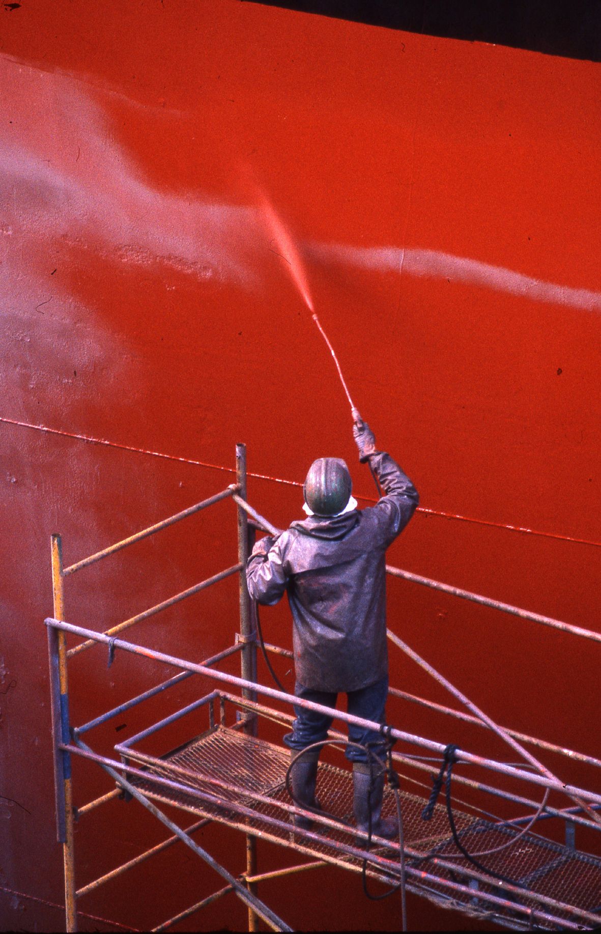 Oppositions chromatiques, compositions décalées, objets déclinés, paysages et matières métalliques du port... l’œil de René Breton a balayé également postures et gestes, comme ceux des caréneurs des cales sèches, donnant une autre dimension à ce métier.